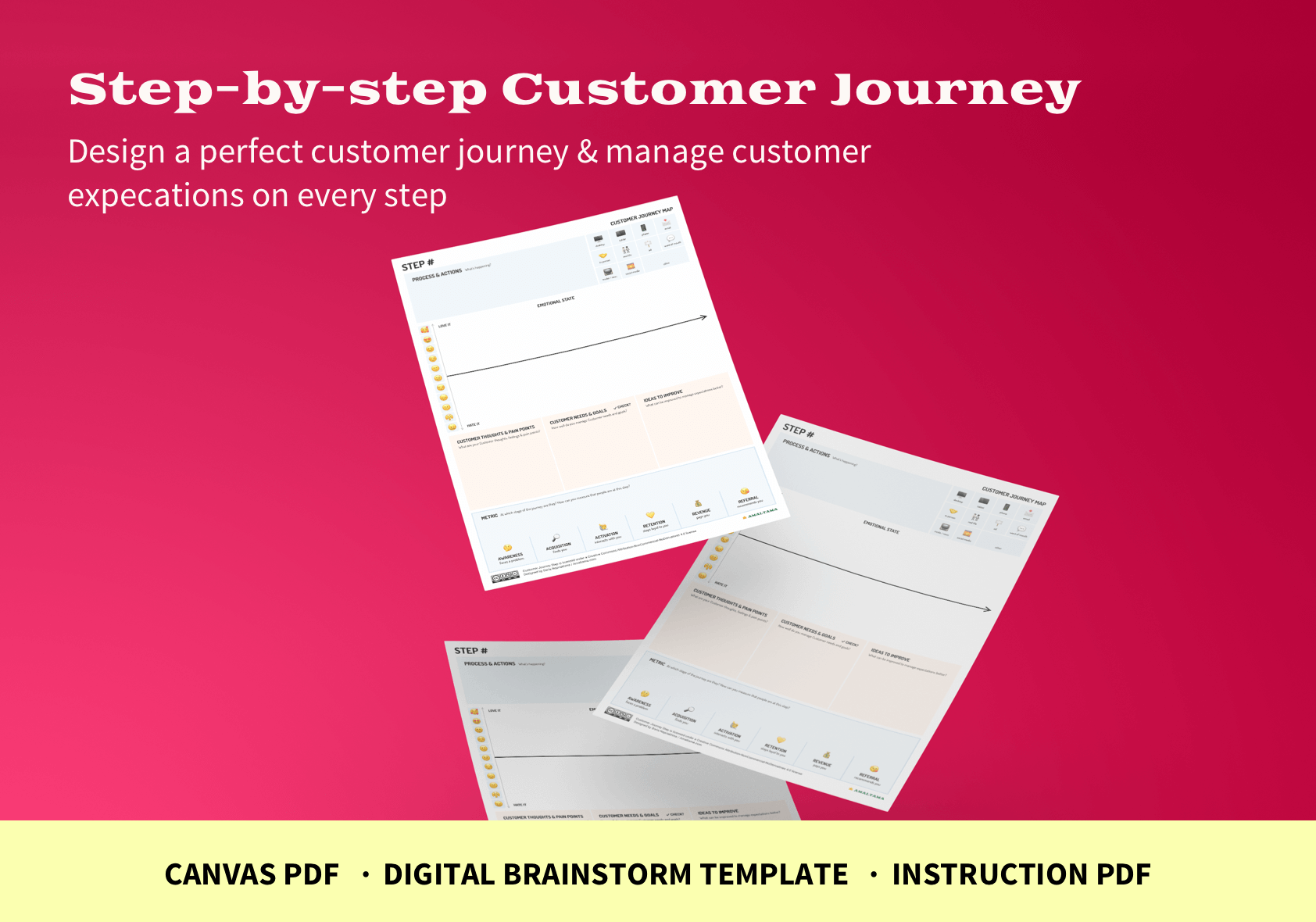 Design a perfect customer journey & manage customer expectations at every step. Define Pirate Metrics AAARRR for every step to measure the entire journey. ✓ Step-by-Step Customer journey template in PDF ✓ Step-by-Step Customer journey adjusted for comfortable digital brainstorms using online tools such as Miro✓ Step-by-Step Customer journey template instruction slides in PDF